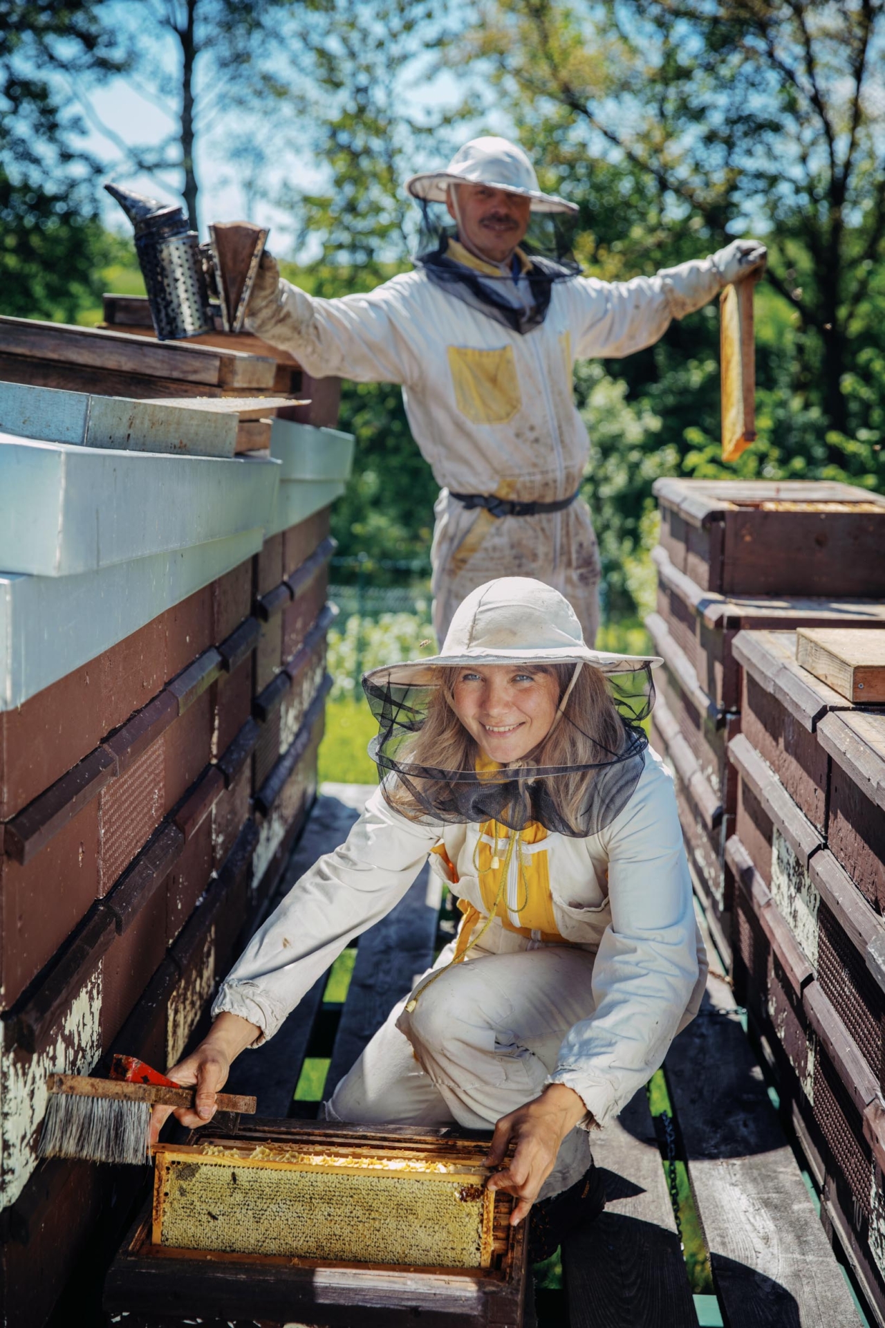 Z lásky k muzice se stala osudová láska ke včelám a mým snem bylo si vybudovat svoji originální včelí farmu. Po studiích na Pražské konzervatoři a desetileté kariéře hráčky na saxofon a klarinet jsem se tedy díky rozvoji své farmy vrátila zpět do kraje, kde jsem se narodila a prožila krásné dětství. Začátky podnikání ale nebyly vůbec jednoduché, nevěděla jsem, jak se o včely starat. Hodně lidí mi nevěřilo a od profesionálního chovu včel mě spíš zrazovalo, ale svoji cestu si každý volí sám, asi to tak mělo být. Ta moje cesta byla trnitá, ale díky ní si člověk zatraceně váží toho, kam se v životě posunul. Dnes nás množství spokojených zákazníků neustále nutí farmu zvětšovat a vylepšovat, za což jsme skutečně vděční. V současnosti jsme malá rodinná farma, chováme 300 včelstev na unikátním území CHKO Broumovsko a v sezóně se staráme o miliony neposedných zaměstnanců 🙂